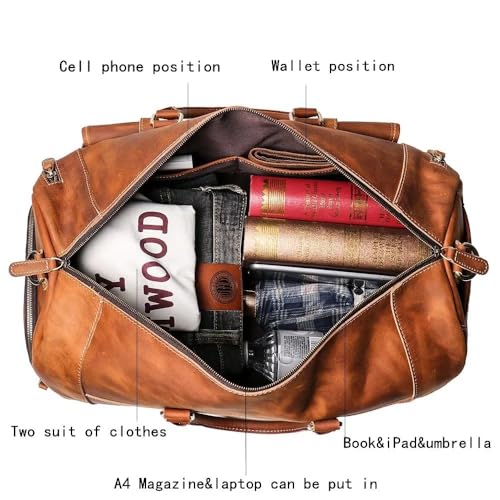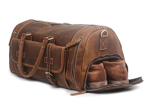 More information about Full Grain Leather Travel Duffel Bag, Leather Weekend Bag with Shoe Compartment, Mens retro Gift Carry on Bag (Carry-On 22-Inch)