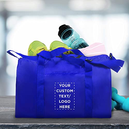 24 Sporty Duffle Bags Set - Customizable Text, Logo - Polyester, Adjustable Strap, Front Pocket, Roll Styling - Royal Blue 5