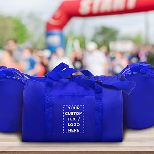 24 Sporty Duffle Bags Set - Customizable Text, Logo - Polyester, Adjustable Strap, Front Pocket, Roll Styling - Royal Blue 1