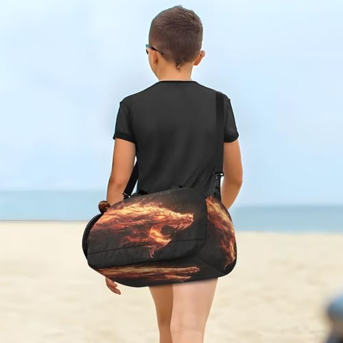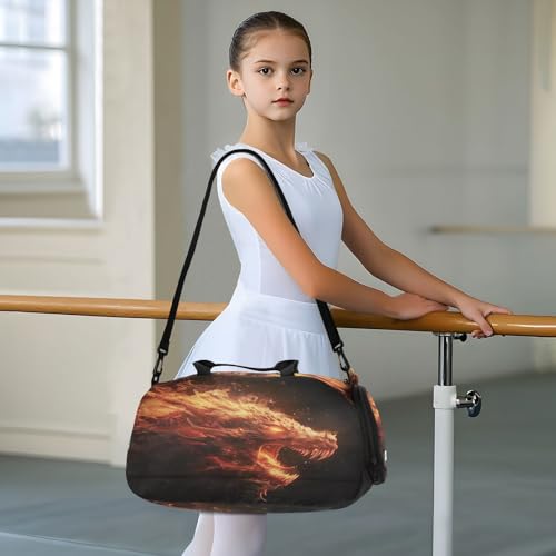 YETTASBIN Sport Travel Duffel Bag for Girls Boys, Fire Dragon Large Waterproof Weekender Overnight Bag, Detachable Shoulder Strap Gym Bag with Shoe Compartment & Wet Pocket 5