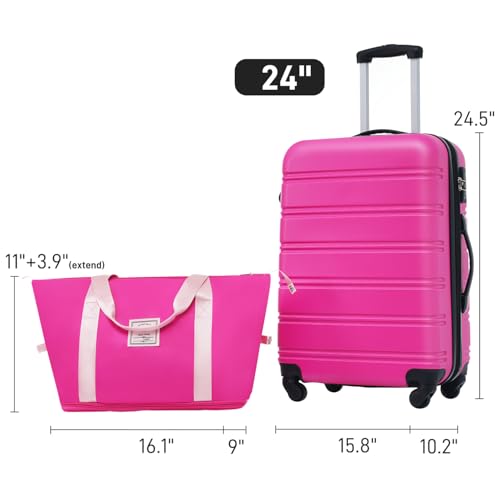 sizzling ! Hardshell Luggage Sets 24inches + Bag Spinner Suitcase with TSA Lock Lightweight(Pink)