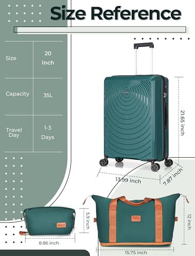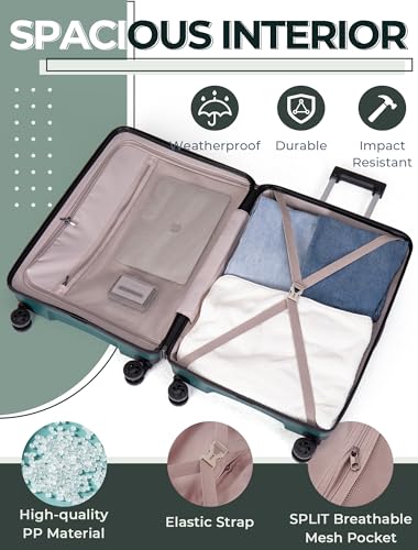 More information about Luggage Sets,Suitcases with Wheels, Hardshell Suitcase Set, PP Carry on Luggage Set with TSA Lock, Travel Luggage (Dark Green, Bag Type)