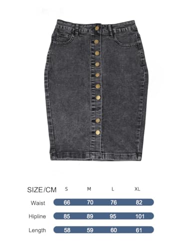 sizzling ! Women's Denim Pencil Skirt - Button Accented Elastic Waist with Functional Pockets, Casual Slim Fit
