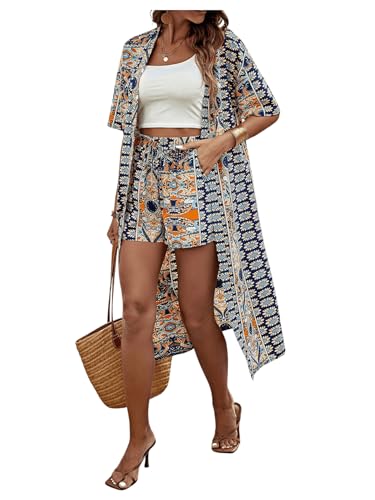 Verdusa Women's 2 Piece Outfits Summer Half Sleeve Tropical Kimono Top and Shorts Set 1