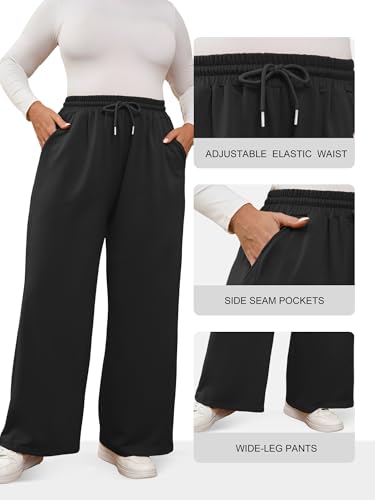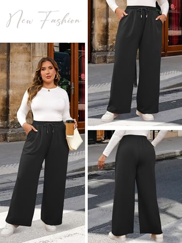 MK browse Limited Plus Size Wide Leg Pants for Women Yoga Sweatpants Lounge High Waisted Drawstring Baggy Pants with Pockets