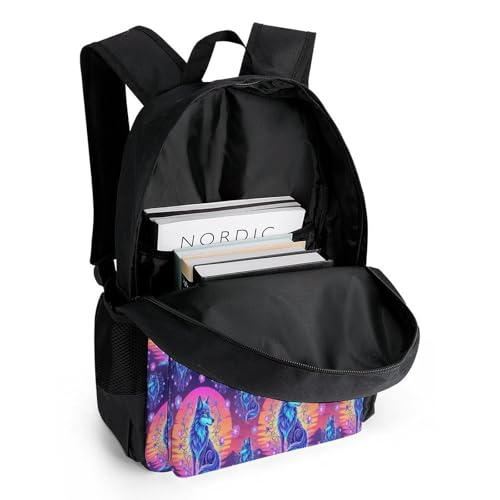 More information about Womens Fashion Backpack, Galaxy Starry Floral Flowers Wolf cozy Versatile Commute Backpack with Side Pockets, Reusable Daypack for Travel