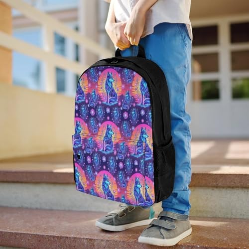 sizzling ! Womens Fashion Backpack, Galaxy Starry Floral Flowers Wolf plush Versatile Commute Backpack with Side Pockets, Reusable Daypack for Travel