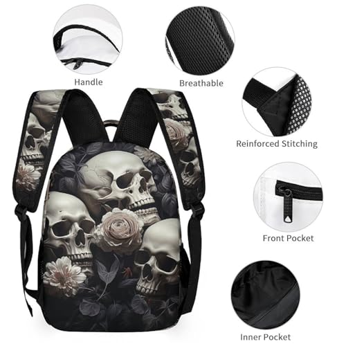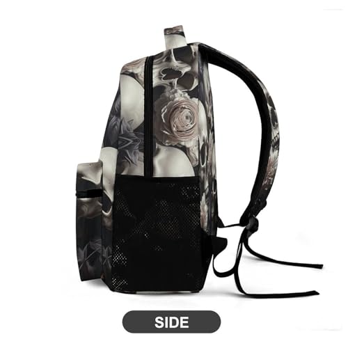 Black And White Flowers And Skull Backpack for Men Women, tough Small Backpack Casual Lightweight Daypack for Travel Bag