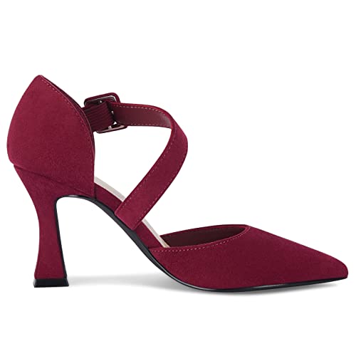 Coutgo Women's One Cross Strap Pumps Pointed Toe Stiletto High Heels Buckle Strap Dress Party Wedding Shoes