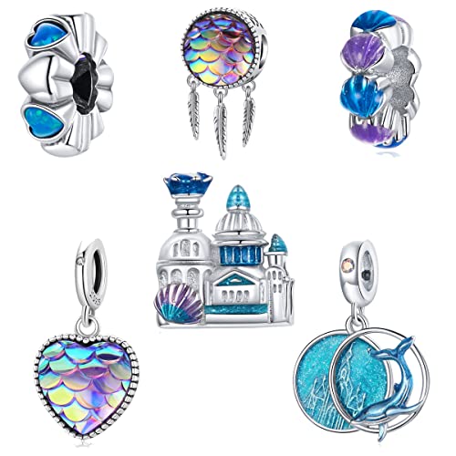 Beauty Ocean Underwater World Charms Blue Mermaid Tail 925 Sterling Silver Crystal Clip Stopper Spacer Bead Tropical Fish Scale Whale Pendant Charm for Bracelet Necklace