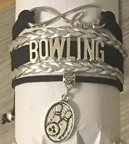 Item display length: 6 inchesChain type: Cable Chain, Rope ChainGem type: No gemstoneBowling-Inspired Design – Features a silver-tone infinity “LOVE” charm, bold “BOWLING” lettering, and a dangling bowling ball and pins charm.iconic Black & Silver Look – Made with layered faux leather and wax cord in black and silver—easy to match with league shirts or casual outfits.Adjustable Fit – Lobster clasp with extender chain fits most wrist sizes (approx. 6.5–8.5). Comfortable for teens and adults.Perfect for Team Gifts – A thoughtful gift for bowling teammates, coaches, or league awards. Great for birthdays, tournaments, or end-of-season gifts.Lightweight & Easy to Wear – Designed for everyday wear. Soft, flexible material that won’t irritate skin or get in the way during play. Perfect for everyday use. supreme materials and excellent craftsmanship ensure long-lasting durability.