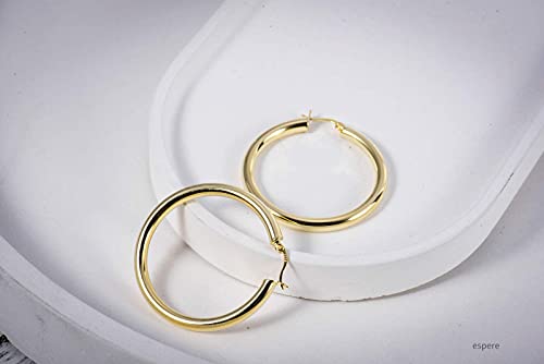 sizzling ! 18K Gold Plated Tube Earrings Gold Large Thick Hoops 42mm | Lightweight Hallow Hoops Statement Earrings