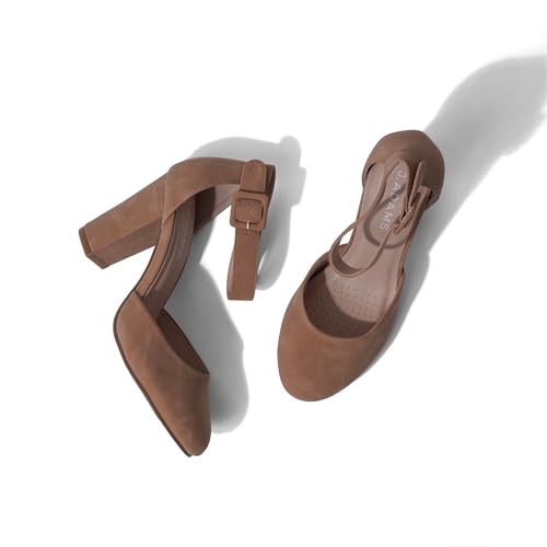 J. Adams Cuppy Heels for Women - Round Closed Toe Ankle Strap Chunky High Heel