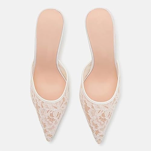 More information about Women's Pointed Kitten Heel Black Lace Heels Mesh Mules Closed Slip Backless Dress Pumps Shoes