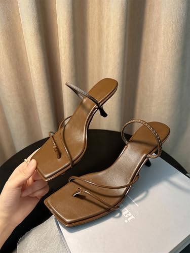 Women's Square Open Toe Slip-On Slide Toe Strap Pumps High Stiletto Comma Heeled Sandals Strappy iconic Work Office Church Shoes Sexy Dating Dress Business Party Summer Heels