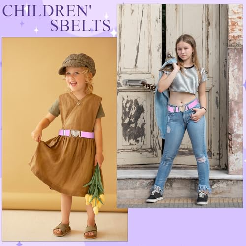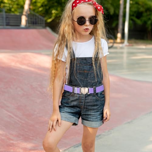 2Pcs Girls Belt, Elastic Waist Belts for Girls Adjustable Heart Buckle Stretch Belts for Pants Jeans Dress