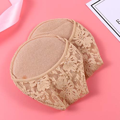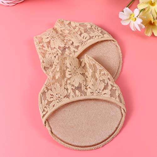 HEALLILY Women's Beige 2 Pairs Lace Cloth & Rubber Non-Slip Half Socks Toe Toppers, Seamless, Breathable, High Arch, Skin Color 5