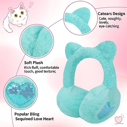 • 【CUTE EAR WARMERS】- ♥♥Our winter heated earmuffs are designed with bling sequined love heart, and very dense plush all over the body. The super cute cat ears earmuffs make you more naughty and stunning after wearing them, and make your outfit more eye-catching.