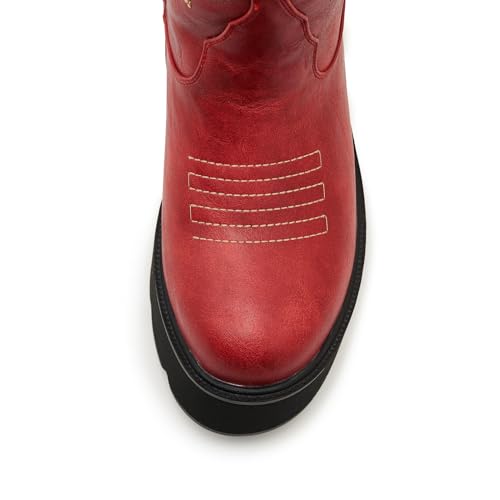 • Statement Platform Design These red platform cowgirl boots feature a chunky sole that adds height and bold style to any outfit.