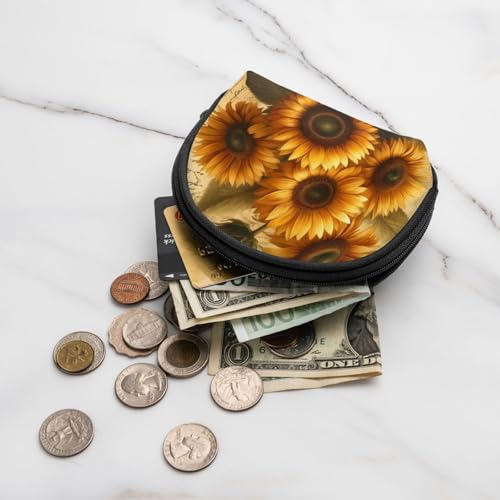Portable Coin Purse Vintage-Sunflower Mini Zippered Money Pouch Card Holder 6