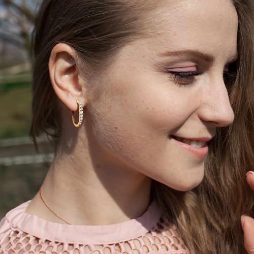 Aidomiya14K Gold Earrings for Women Gold Hoop Earrings for Women Hoop Earring for Womens Hoops present-day U-shaped Design Lightweight Hoops Earring for Women with Dazzling CZ Stones 16mm/25mm