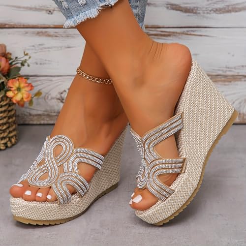 Why Choose Summer brand-new Fish Mouth Thick Soled Wedge Heeled Slippers For Women Retro Rhinestone Hollow Outer Wear Large Size ls And Slippers ls for Women Size 12?