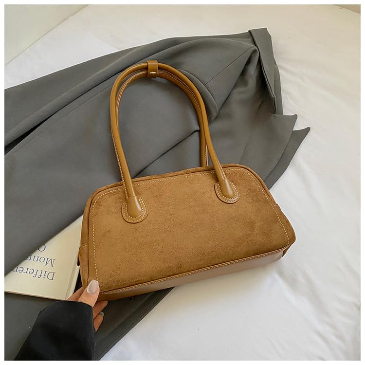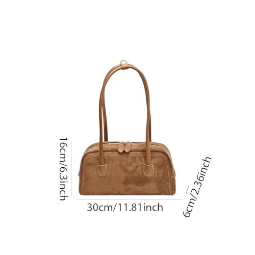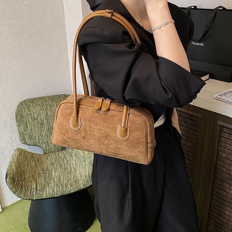 sizzling ! Ladies Elegant Boston Bag Solid Color Mini Shoulder Bag Suede Leather Versatile Handbag Work Commute Shopping Party Bag