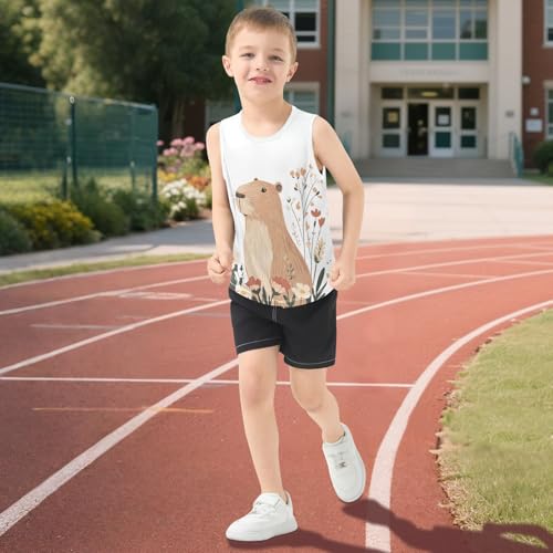 Boys Tank Top Shirts Capybara and Floral Sleeveless T-Shirts Crew Neck for Kids Clothing Children