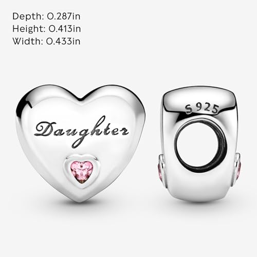 • Expression of fancy: Celebrate the bond you have with your daughter with this sterling silver heart charm with heart-shaped pink stones and the engraving 'daughter,' adorned with cubic zirconia stones