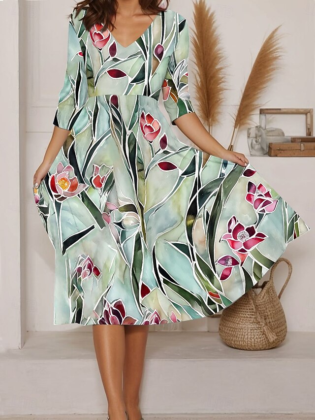 This Women's Midi Dress A Line Dress Vacation Casual Going out Regular Fit Floral Graphic Long Sleeve V Neck Yellow Red Green Beige Summer combines elegant design with practical functionality. Every detail has been carefully considered to ensure you get the foremost possible experience. The supreme construction means this product will serve you well for years to come.