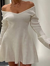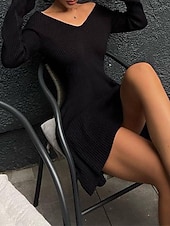More information about Women's Mini Dress Sweater Dress Bodycon Sheath Dress Fashion newly-released-age Daily Weekend Regular Fit Plain Long Sleeve V Neck Black White Spring Fall