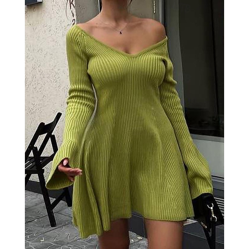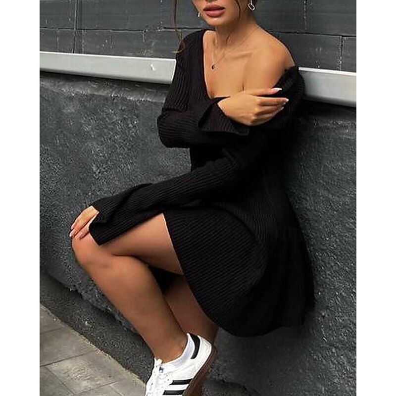 sizzling ! Women's Mini Dress Sweater Dress Bodycon Sheath Dress Fashion present-day Daily Weekend Regular Fit Plain Long Sleeve V Neck Black White Spring Fall