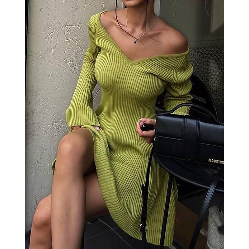 Women's Mini Dress Sweater Dress Bodycon Sheath Dress Fashion Modern Daily Weekend Regular Fit Plain Long Sleeve V Neck Black White Spring Fall 7