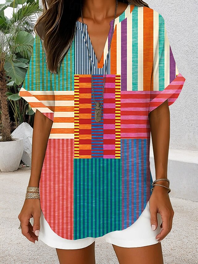 More information about Women's Boho Shirt Graphic Geometric Elegant Bohemia Tropical Sleeveless Short Sleeve Regular Tops Daily Holiday Beach Wear Yellow Red Blue Orange Brown Summer Spring