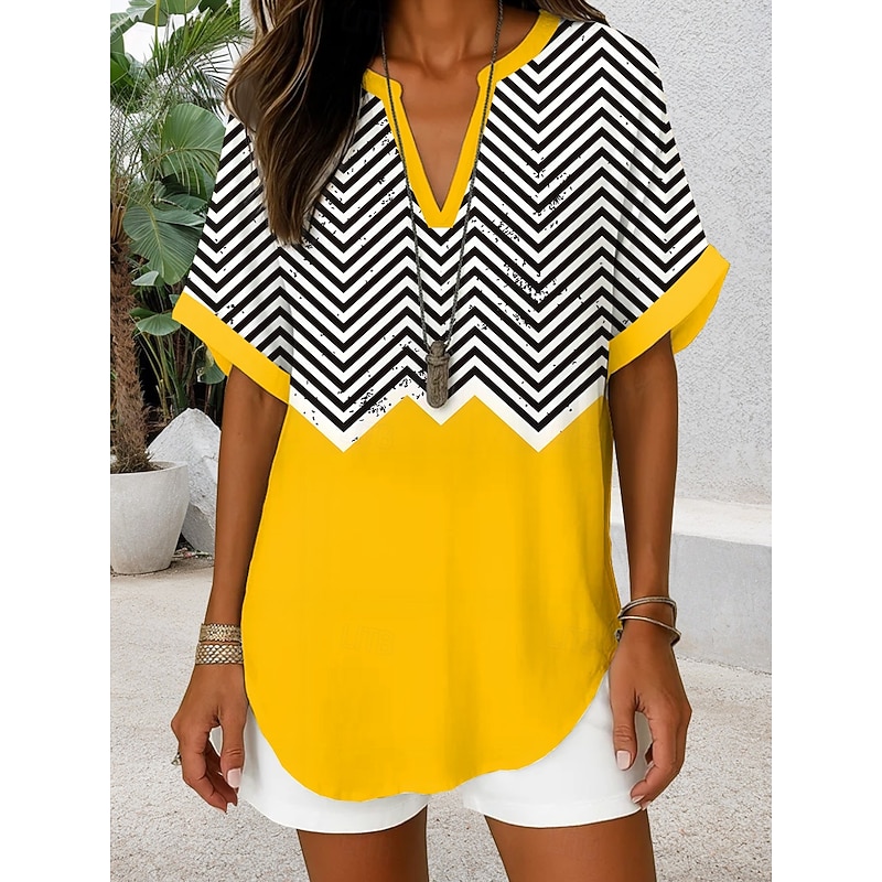 Women's Boho Shirt Graphic Geometric Elegant Bohemia Tropical Sleeveless Short Sleeve Regular Tops Daily Holiday Beach Wear Yellow Red Blue Orange Brown Summer Spring 24