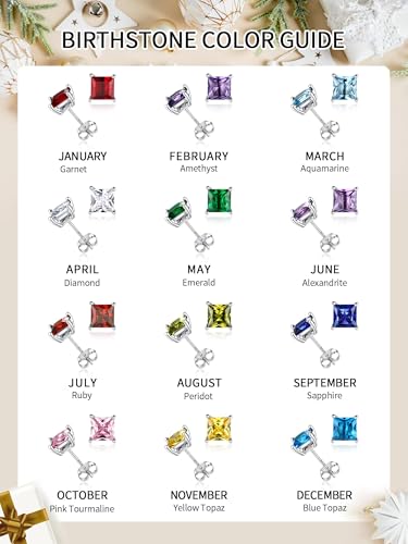 ChicSilver 925 Sterling Silver Earrings Sparkling Heart/Round/Princess Cut Birthstone Earrings for Women Birthday Jewelry with Gift Box