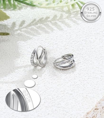 925 Sterling Silver Small Hoop Earrings for Women 18K White Gold Plated Cubic Zirconia Huggie Hoop Earrings Dainty Hoops Earring Double Hoop Earrings 5