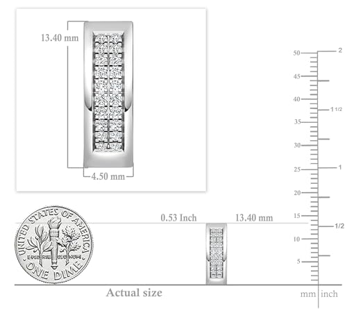 • SPECIFICATIONS - 925 Sterling Silver; White Diamond Color: I-J; Clarity: I2-I3; Creation: Natural; Treatment: Not-treated; Round White Diamond(s) Weight: 0.12 Cttw; Product Height: 13.40mm (0.53 inch); Width: 4.50mm (0.18 inch); Model Number: K6080
