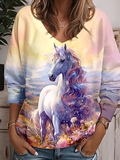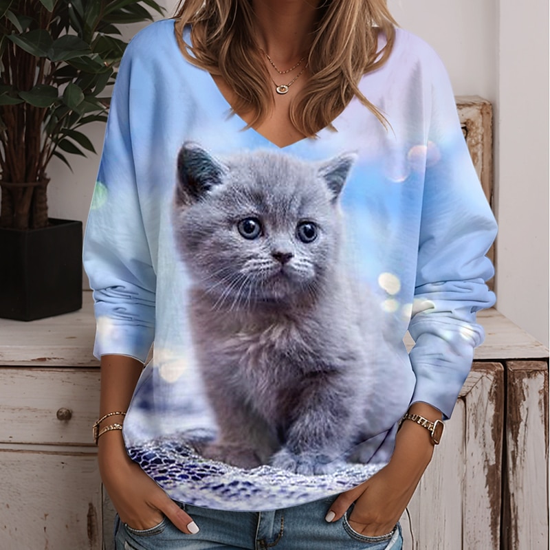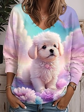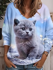 More information about Women's Tunic T Shirt Animal Cat Fashion Funny Long Sleeve V Neck Regular Tops Daily Weekend Print Yellow Blue Purple Green Light Blue Spring & Fall