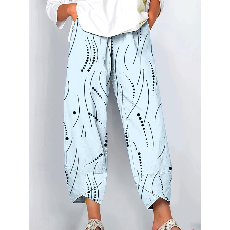 Why Choose Women's Wide Leg Chinos Baggy Pants Vacation Vintage Ethnic Style Ankle-Length High Waist Graphic Geometric Polka Dot Drawstring Patchwork Printing Breathable Inelastic Outdoor Vacation Street Light?