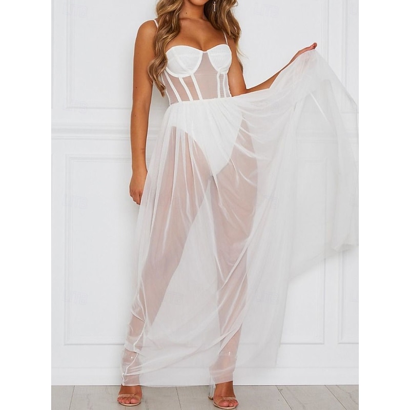 Women's Sexy Lingerie Chemises & Negligees Dress Pure Color Ultra Slim Hot Comfort Home Bed Vacation Mesh Breathable Straps Sleeveless Backless Summer Spring Home Outfits 1