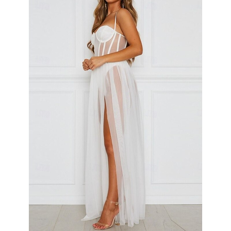 Highlights [Fabric] : Crafted from a lightweight, breathable mesh fabric, this sexy lingerie piece offers a seductive yet cozy fit. The sheer material enhances the allure, while micro-elastic properties ensure a snug but flexible wearability. [Fit] : Designed with an ultra-slim silhouette, this chemise accentuates the body's natural contours. The fitted bodice with molded cups offers support and enhances the bust, while the flowing skirt provides a delicate balance, creating a silhouette that's both flattering and striking. [Design Highlights] : Featuring delicate spaghetti straps and a backless design, this lingerie piece exudes sensuality and elegance. The daring high slit adds a touch of drama, allowing for ease of movement and an unexpected reveal. The pure color scheme emphasizes sophistication, making it ideal for making a bold fashion statement. [Occasions] : superb for versatile occasions, this lingerie piece can be worn for home relaxation, a beach vacation, or as comfortable nightwear. Its elegant design also makes it suitable for special nights where you wish to captivate with style and grace. [Size Range] : Available in sizes S, M, L, and XL, ensuring a suitable fit for a variety of body shapes and preferences.