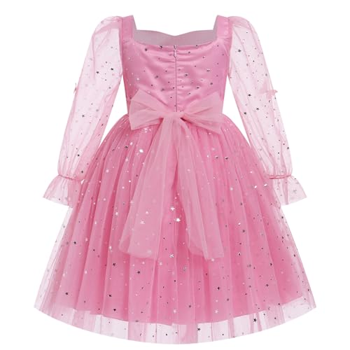 IMEKIS Kids Girls Birthday Princess Dress Mesh Long Sleeve Sparkle Butterfly Stars Tulle Pageant Formal Party Dresses 4