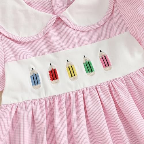 Why Choose Little Girl Back to School Smocked Dress Apple/Letter Embroidery Doll Collar Dresses Toddler Princess Dress?