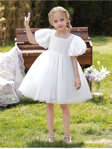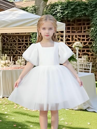 sizzling ! Tutu.kk Toddler Girls Tulle Dress Puff Short Sleeve Square Neck Flower Girl Dress for Birthday Party