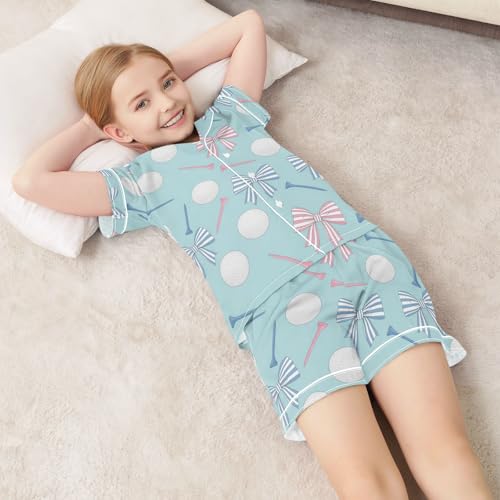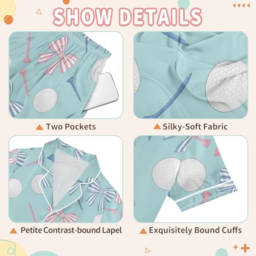Satin Pajama Sets Short Sleeve Golf Balls Tees Bows Pattern Button Down Silky Nightwear 2 Piece PJS 5-14Y 6