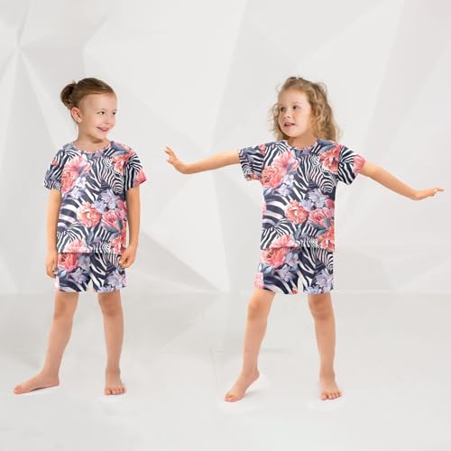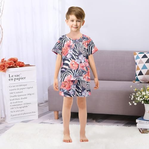 ALAZA Zebra Floral Flower Pajamas Short Sleeve 2 Piece Sleepwear Top and Bottom Pajama Set Unisex 2