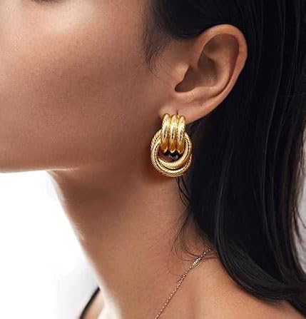 Material: BrassMetal type: BrassBack Finding: Screw BackEarring design: DangleGem type: No Gemstone【Large Knot Earrings for Women】You will receive 2 pairs of extra large size gold chunky earrings in different styles. In order to pursue texture, we have adopted thicker materials. Their weight is heavier than other earrings, making them suitable for punk and heavy metal styles. Large size :1.3in and 0.87in【Extra Large Size Earrings】Heavy metal earrings, bigger and heavier. The inner part of the earrings is made of high-quality brass. Ensuring long-lasting beauty and shine【Fashionable Earrings】Each earring in the set is very personalized, with a iconic design that won't go out of style. It matches well with your various outfits in many occasions. Perfect for dates, parties, dances, birthdays, anniversaries, personal photos, and graduation ceremonies【Ideal Gift for Women】On birthday parties, anniversaries, Mother's Day, Thanksgiving, Christmas or Halloween, the chunky gold dangle earrings are the best gift to give to friends, daughters, wives, sisters【24H Customer Service】 We are pleased to showcase more fashionable jewelry to you. If you have any questions, please feel free to contact us and we will provide effective assistance Perfect for everyday use. top-grade materials and excellent craftsmanship ensure long-lasting durability.