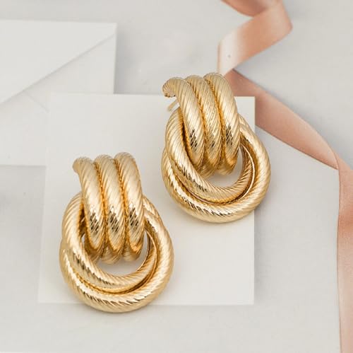 Chunky Knot Earrings Extra Large Statement Earrings Geometric Gold Earring 1.3IN Large Twisted Jewelry for Women
