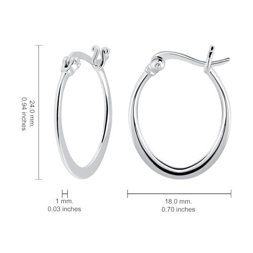 • JEWELRY SPECIFICATION – These 23mm (0.90 inch) in length oval silver hoop earrings come in 4 color options: Silver, Yellow Gold, Rose Gold, Black. Thickness is 1.5mm. Our new-age eye-catching earrings are Lightweight, High Polished, ideal for All Day Wear and Any Occasion.